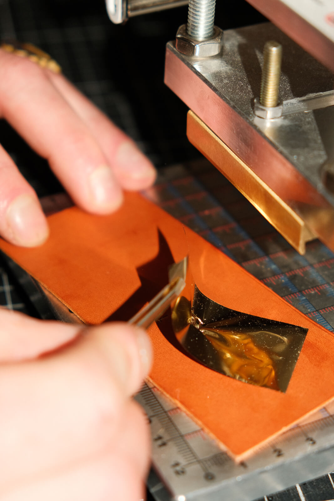 - Bords Parés à la Main : À l'aide de lames japonaises, chaque bord est minutieusement aminci pour un fini élégant et sans coutures. Les lames sont aiguisées à la main avant chaque session pour une précision absolue.