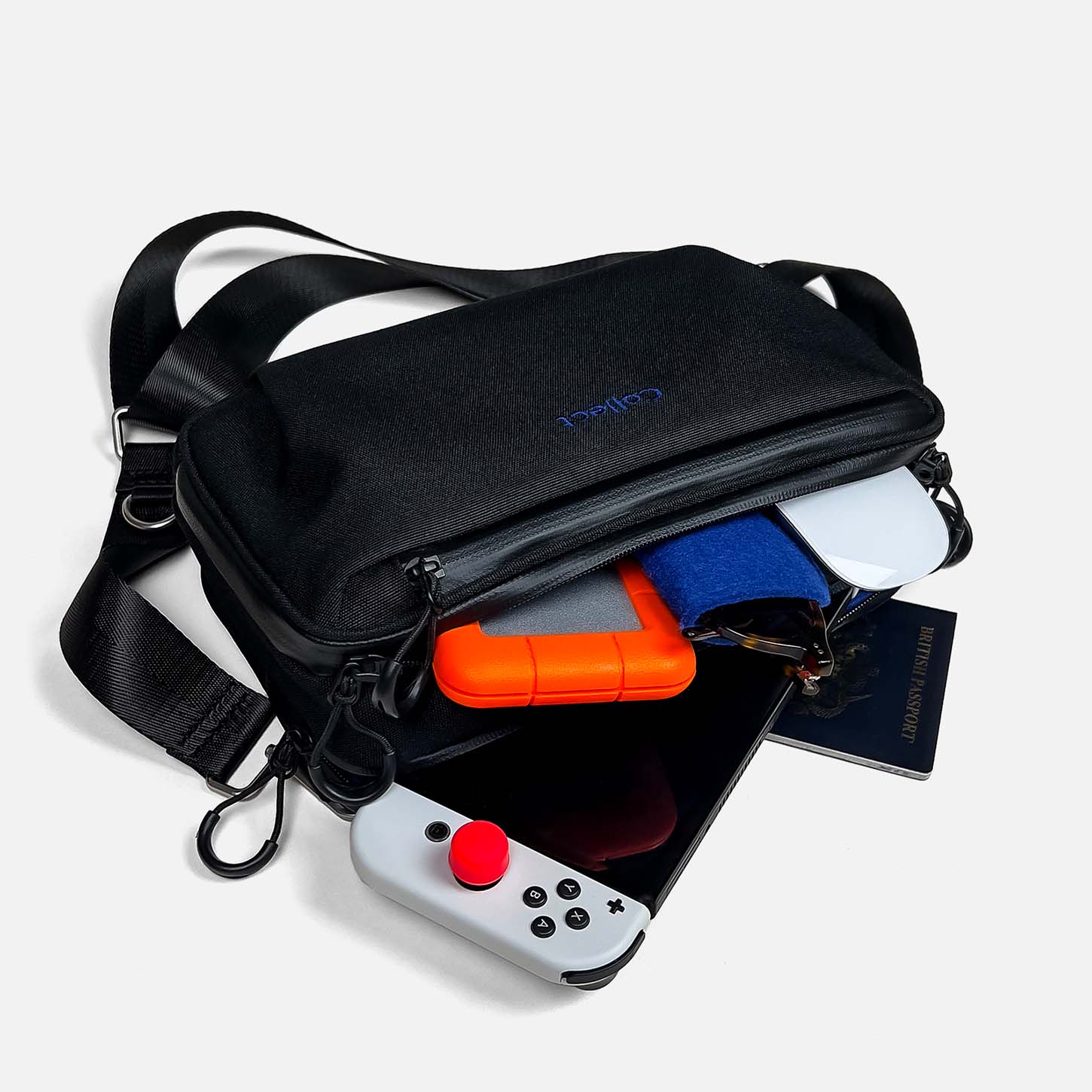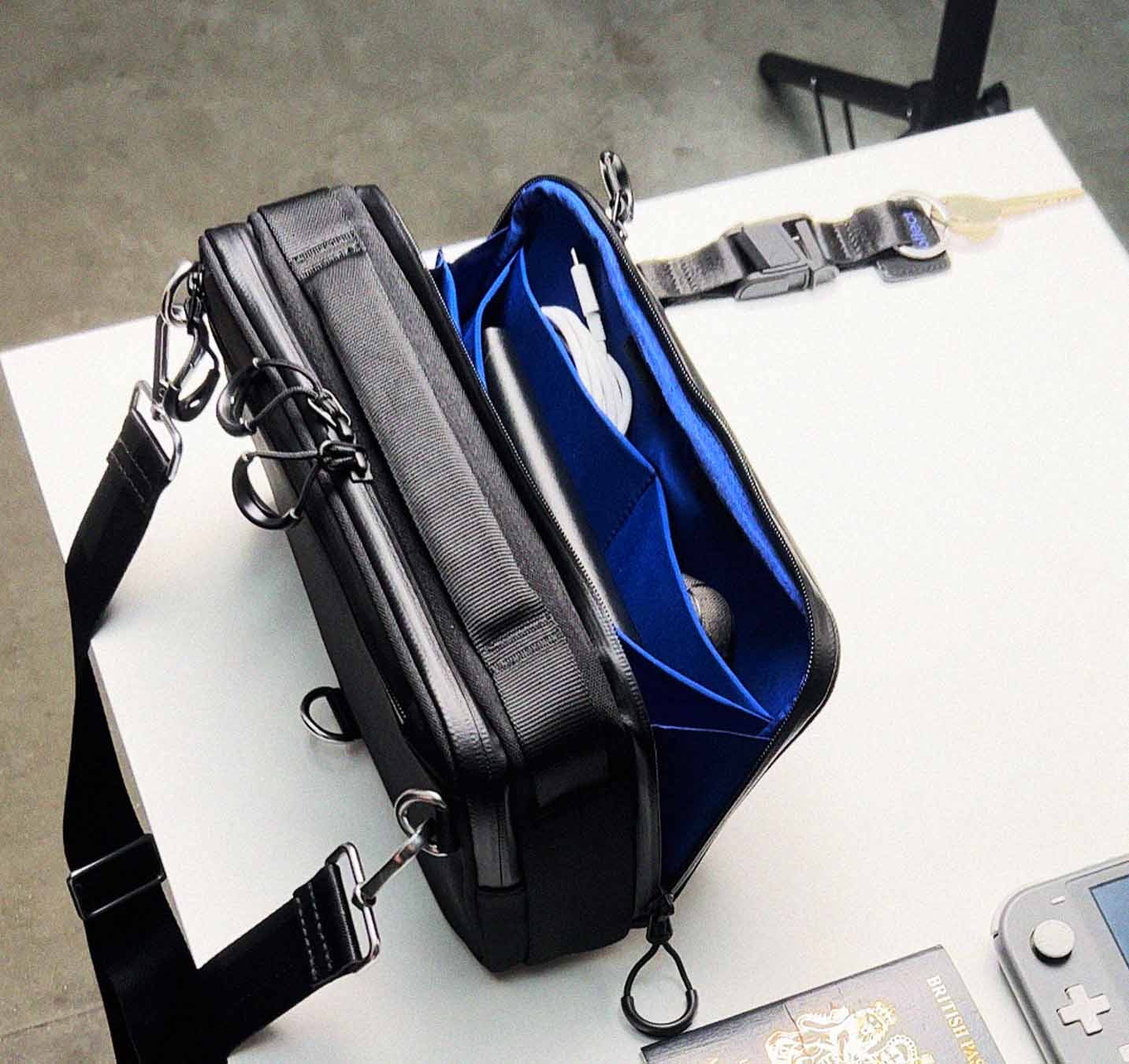 Choisissez le sac à bandoulière Utility pour un maximum de rangement, le sac à bandoulière Slim pour un équilibre entre espace et compacité, ou le sac à bandoulière Mini pour un transport limité aux essentiels.