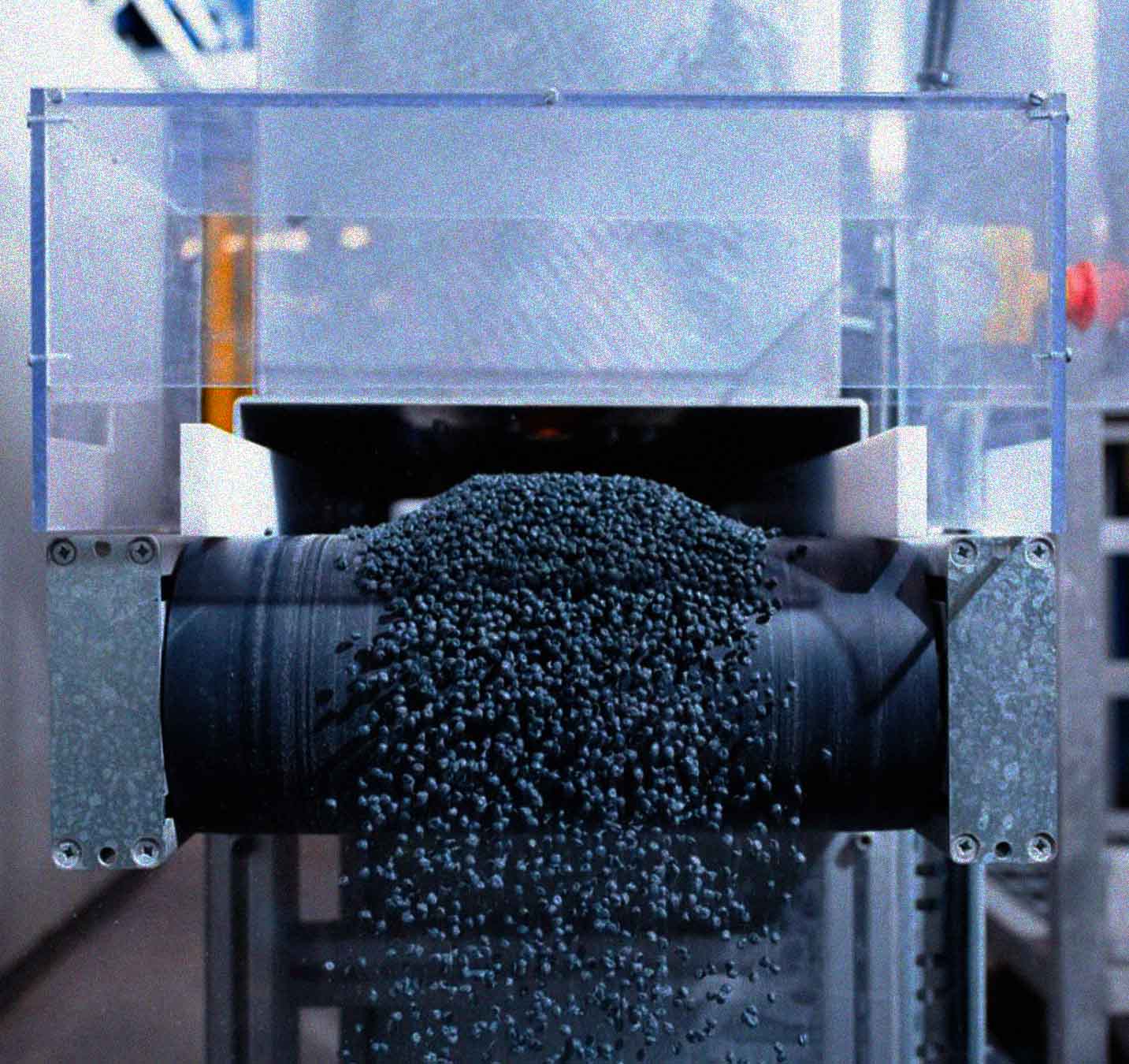 L'assemblage se produit lorsque les petites particules sont fondues ensemble pour former des granulés de plastique. Les granulés peuvent ensuite être utilisés dans la production de notre tissu de déchets marins.